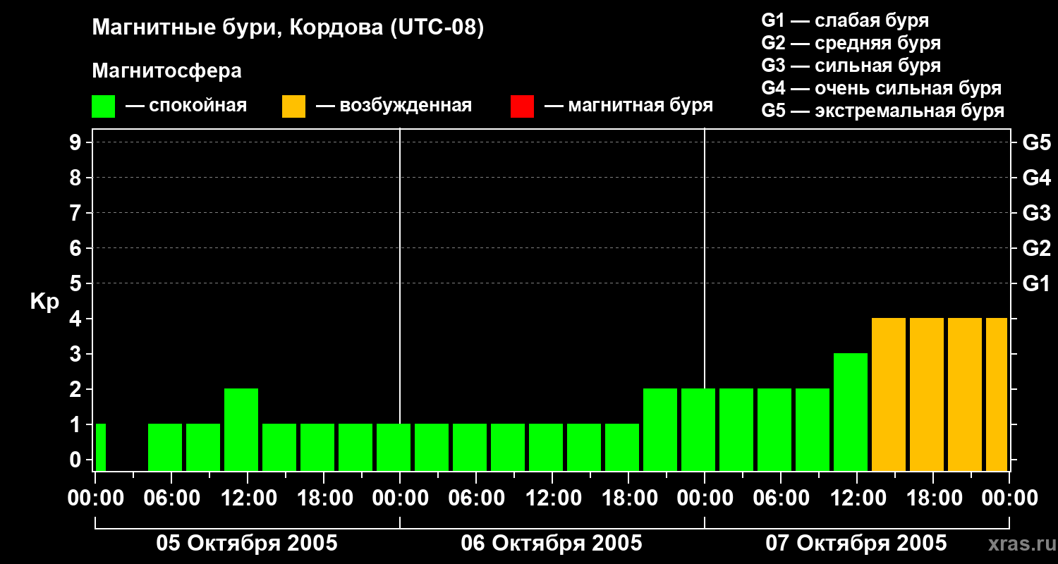 Магнитные бури в Кордове 7 октября 2005 года