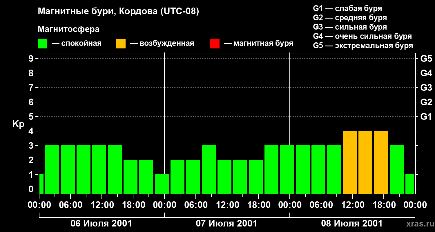 Магнитные бури в Кордове 8 июля 2001 года