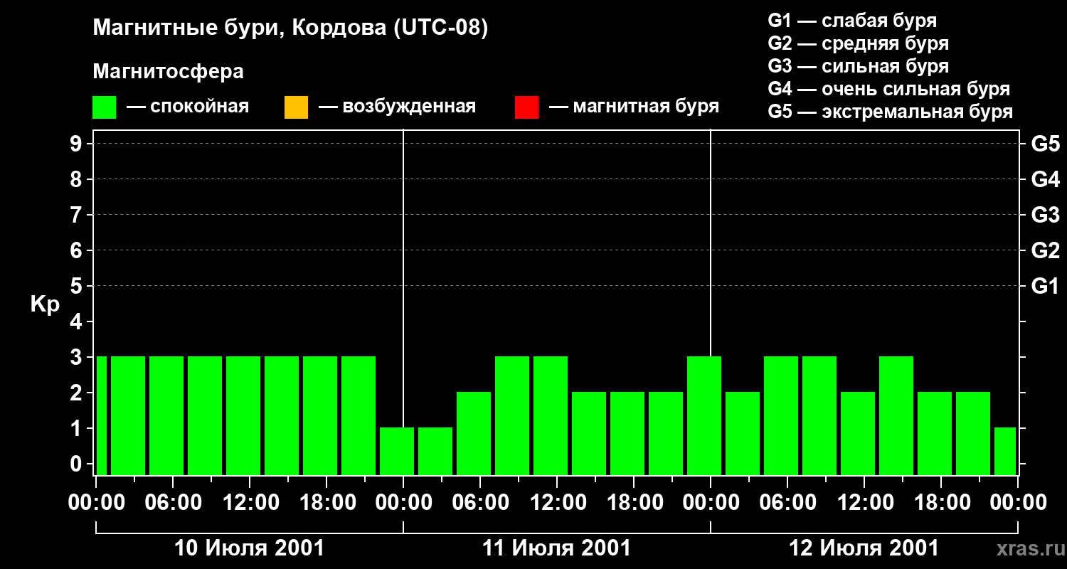 Магнитные бури в Кордове 12 июля 2001 года