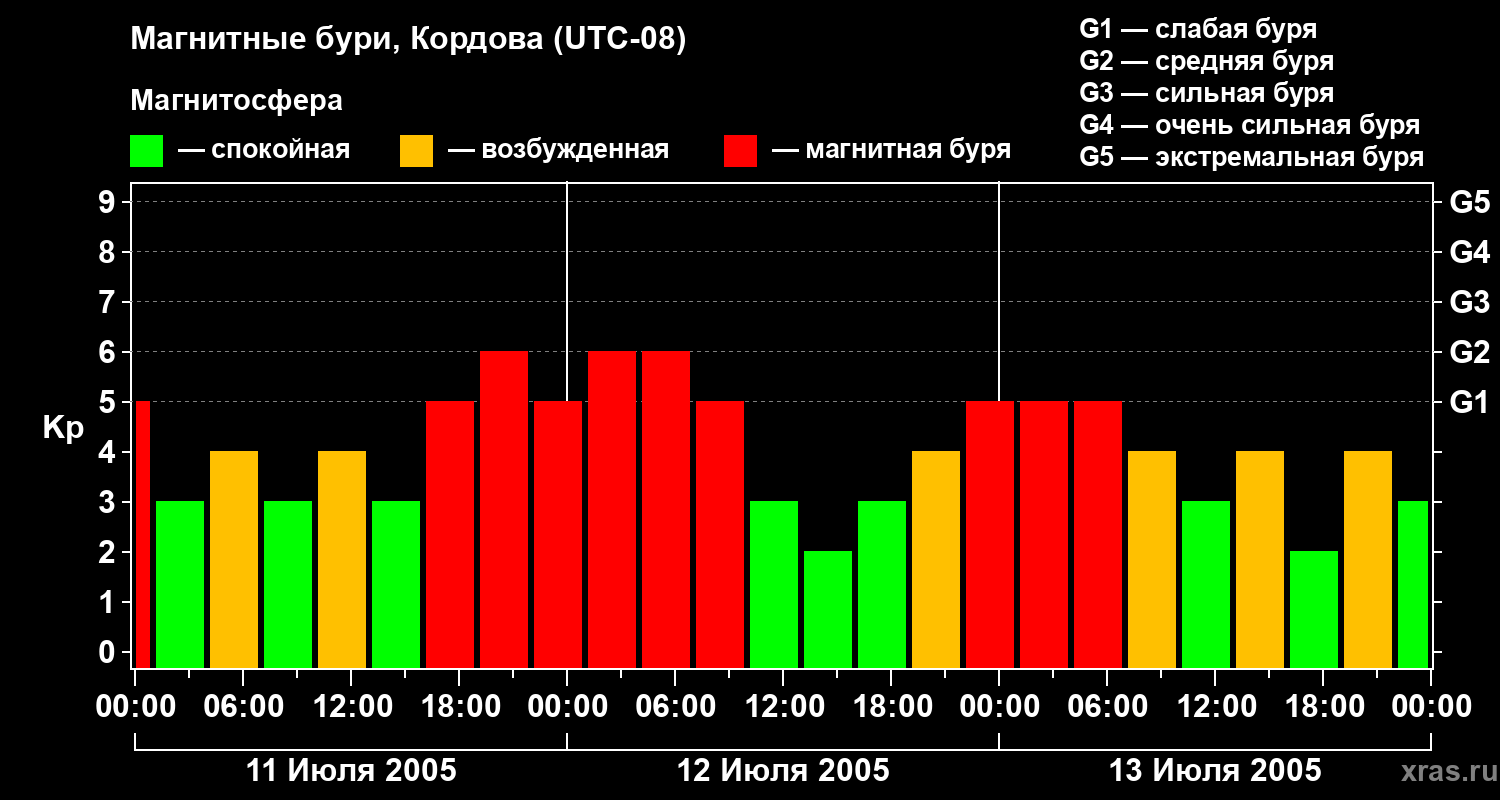 Магнитные бури в Кордове 13 июля 2005 года