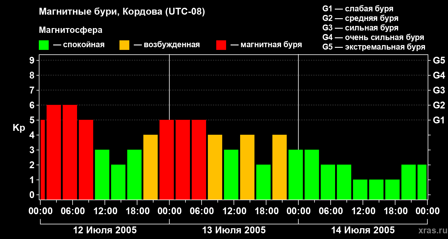 Магнитные бури в Кордове 14 июля 2005 года