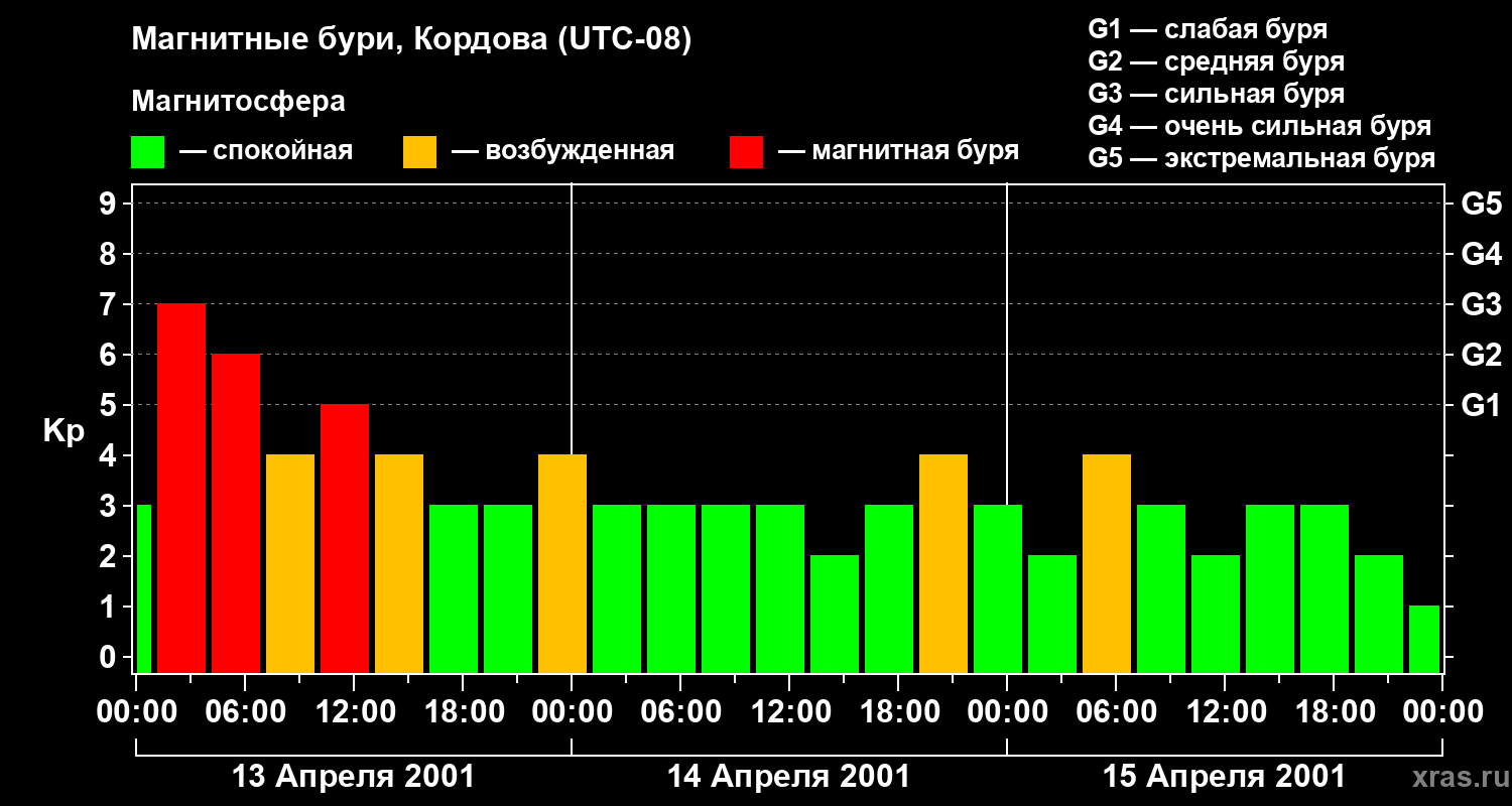 Магнитные бури в Кордове — 15 апреля 2001 года