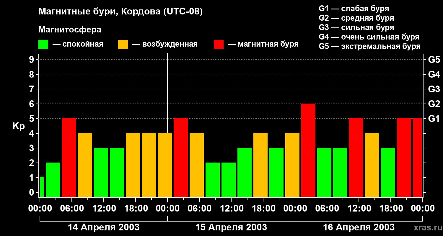Магнитные бури в Кордове — 16 апреля 2003 года