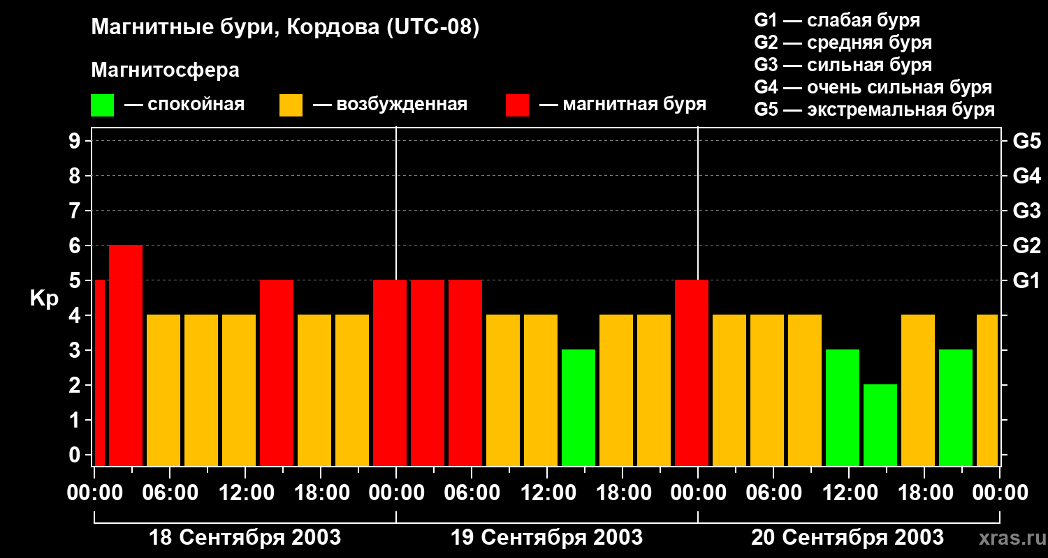Магнитные бури в Кордове — 20 сентября 2003 года