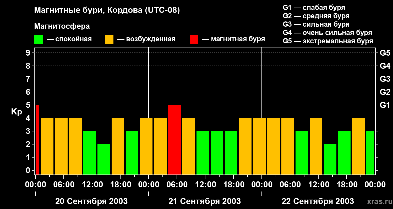 Магнитные бури в Кордове — 22 сентября 2003 года