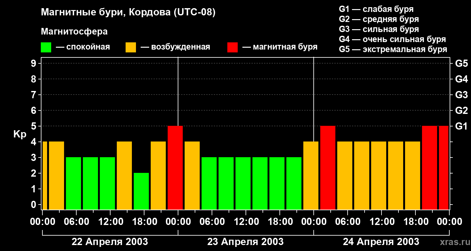 Магнитные бури в Кордове — 24 апреля 2003 года