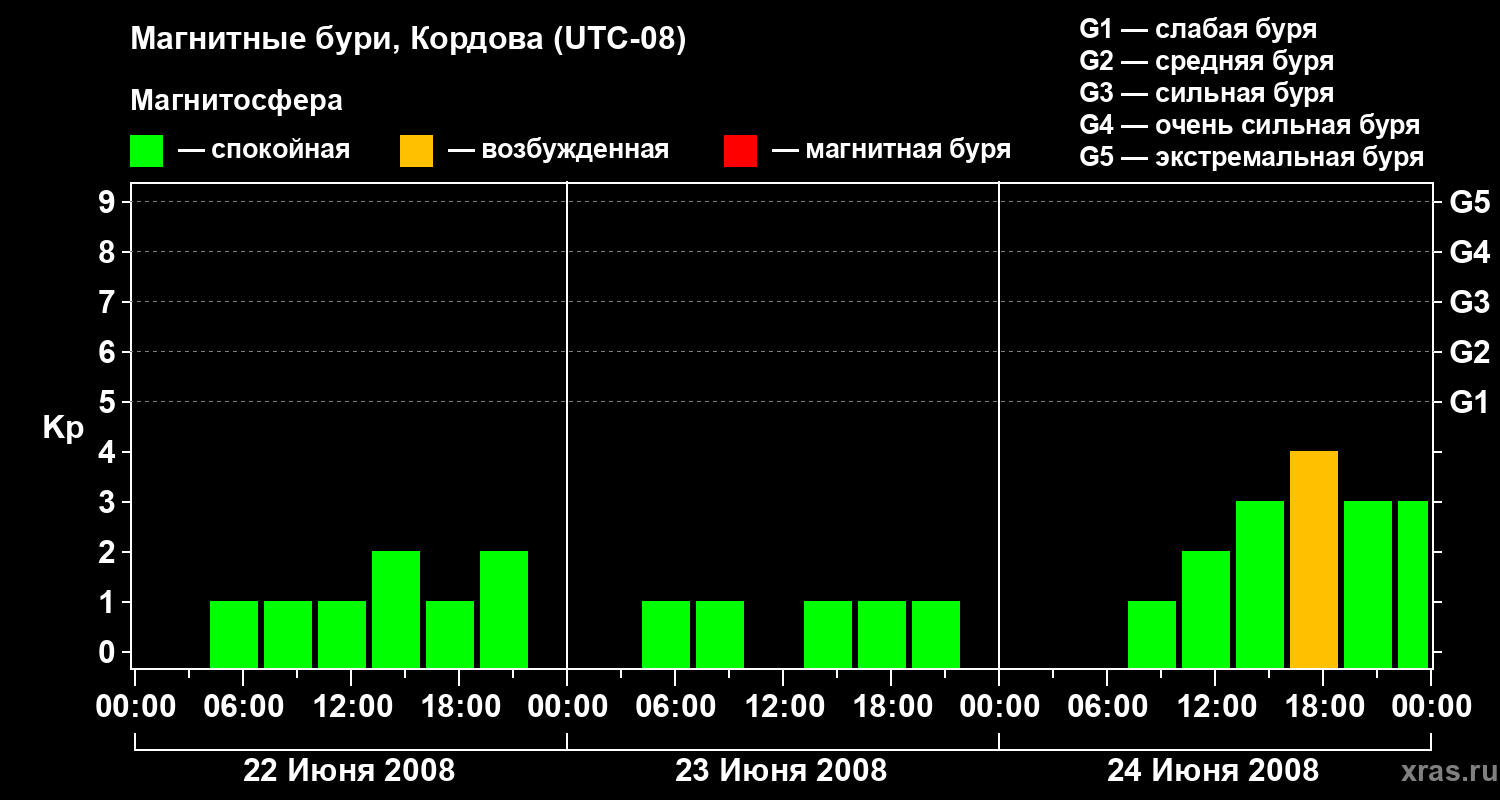 Магнитные бури в Кордове 24 июня 2008 года