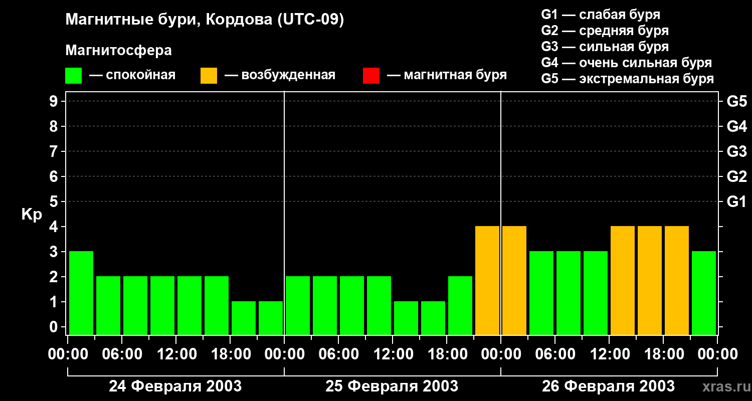 Магнитные бури в Кордове — 26 февраля 2003 года