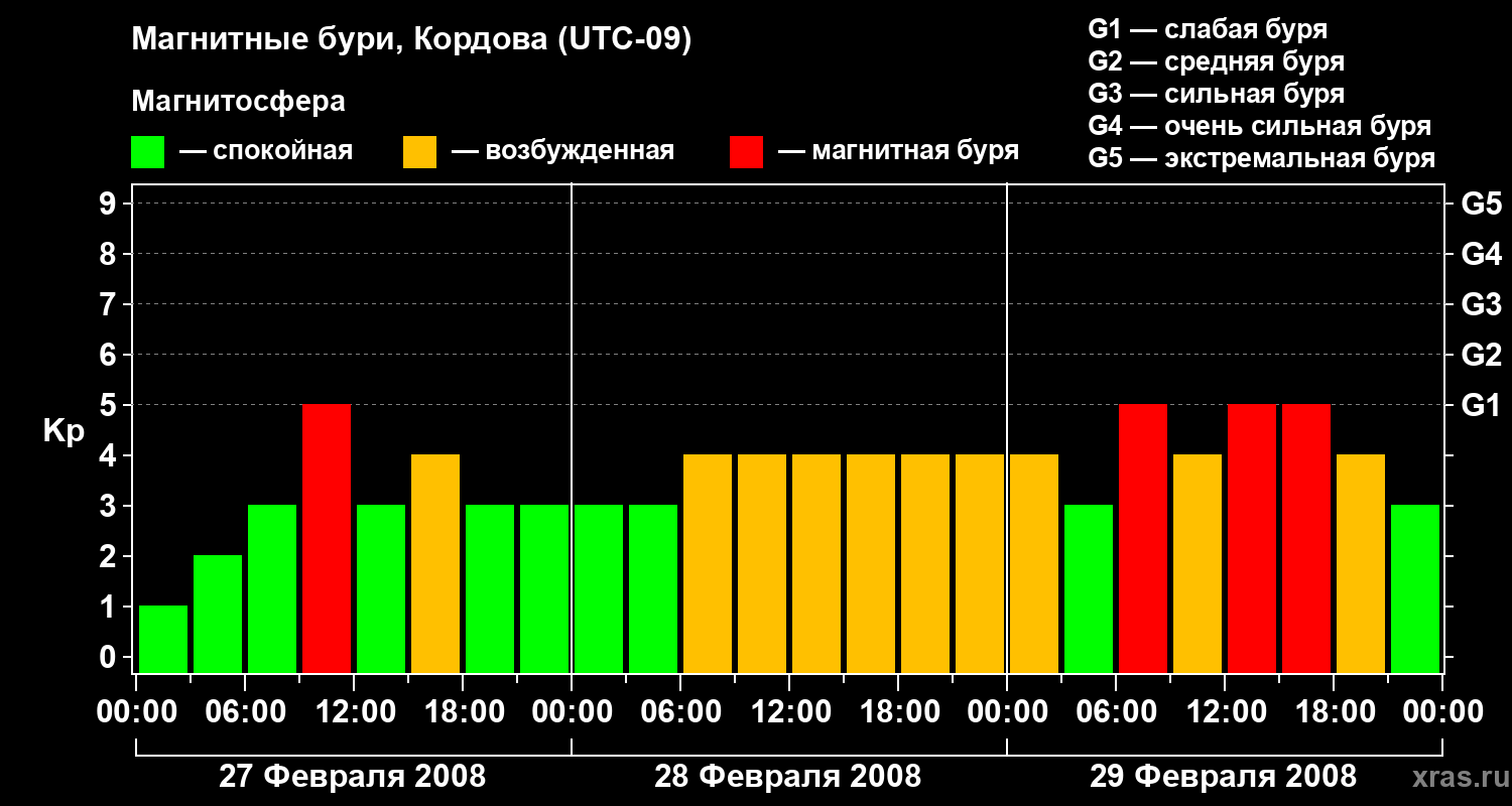 Магнитные бури в Кордове — 29 февраля 2008 года