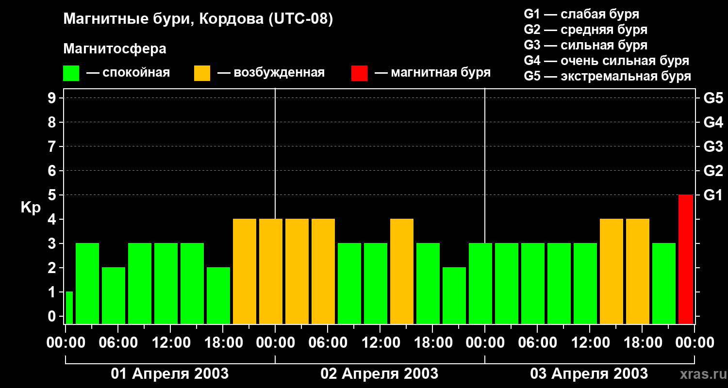 Магнитные бури в Кордове — 3 апреля 2003 года