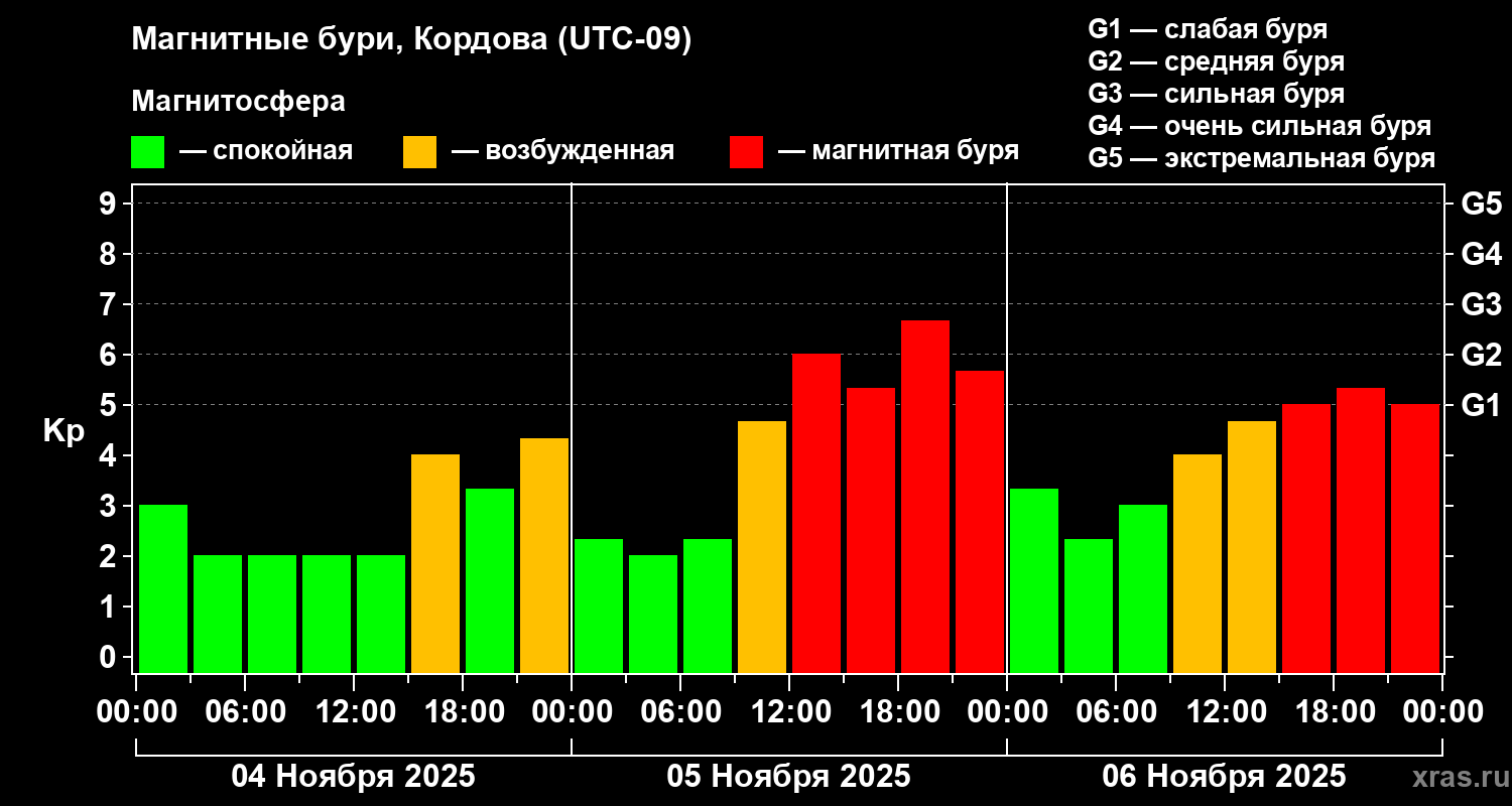 Магнитные бури в Кордове — 6 ноября 2025 года