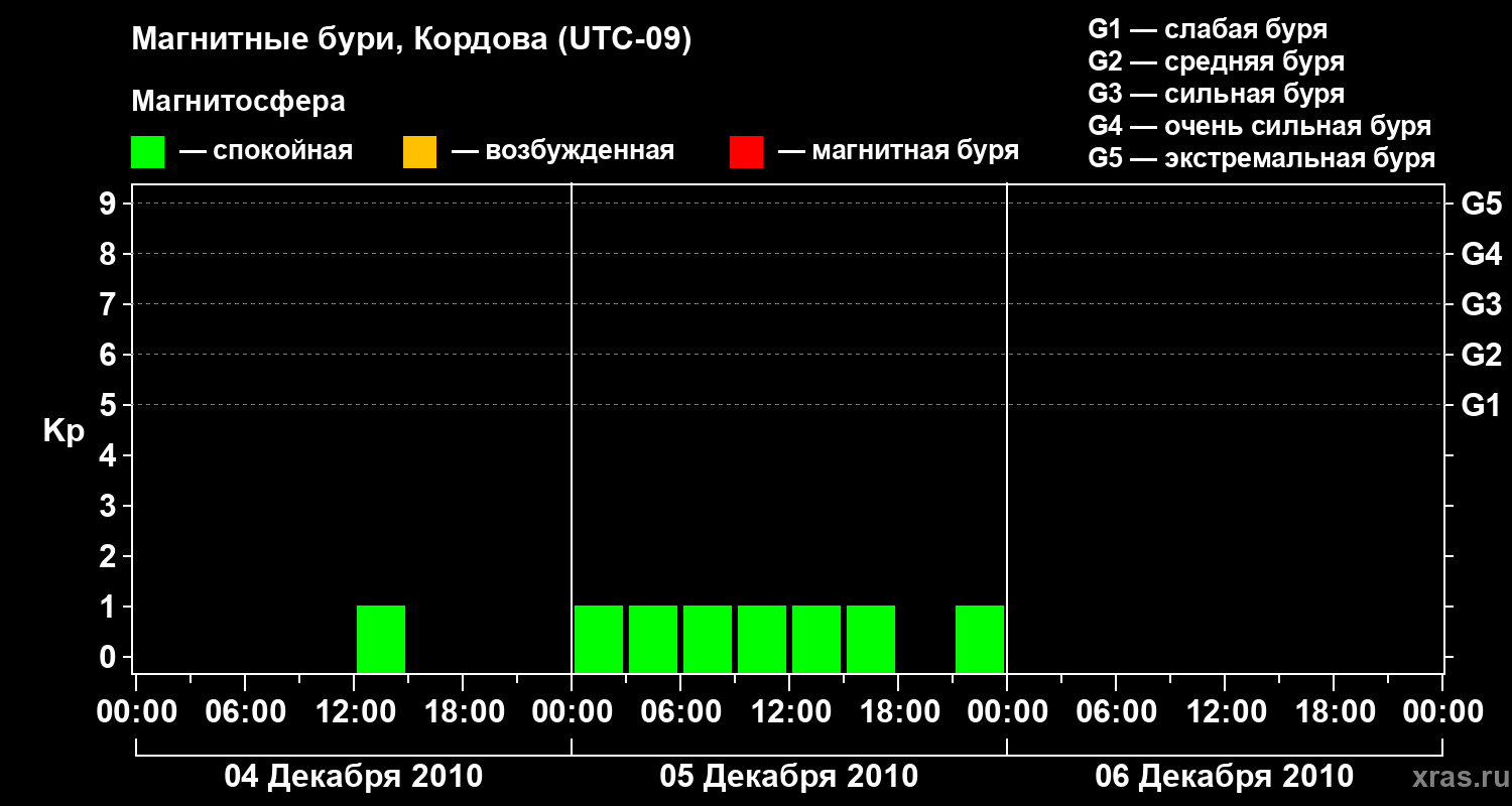 Изменения геомагнитного индекса Kp с 4 по 6 декабря 2010 года для средних широт