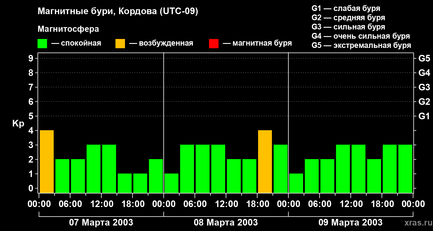 Магнитные бури в Кордове 9 марта 2003 года
