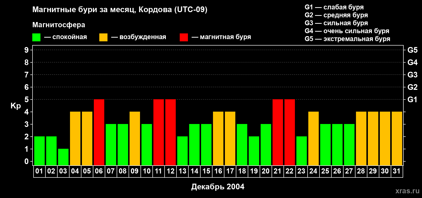 Список магнитных бурь в декабре 2004 года