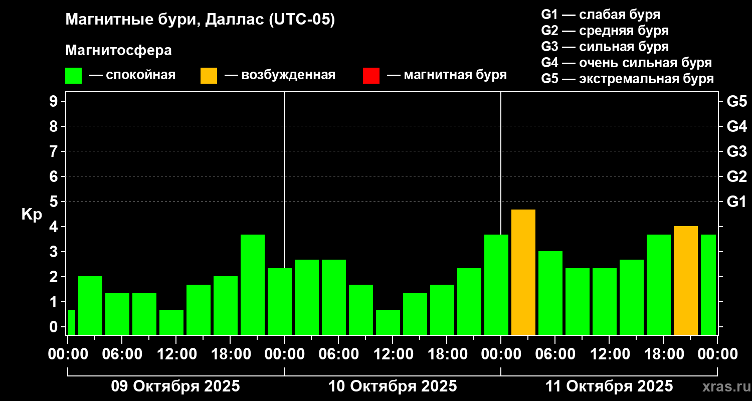 Магнитные бури в Далласе 11 октября 2025 года