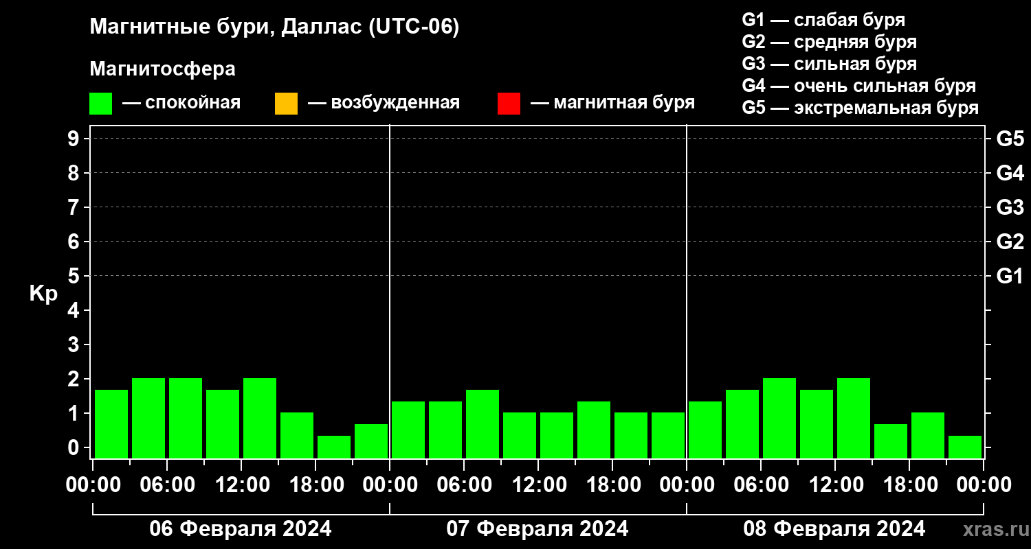 Магнитные бури в Далласе 8 февраля 2024 года