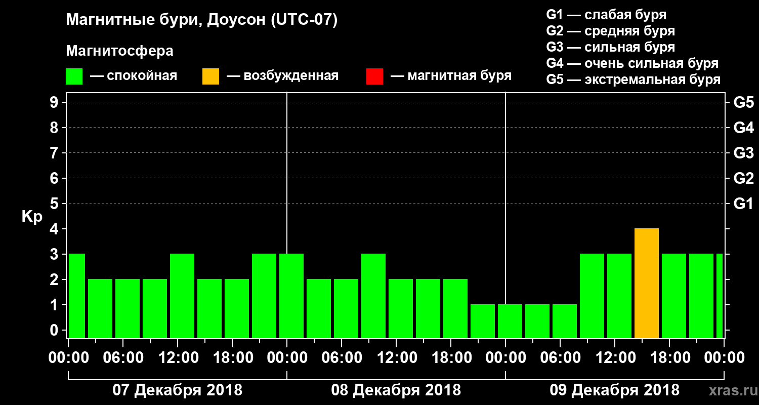 Магнитные бури в Доусоне 9 декабря 2018 года