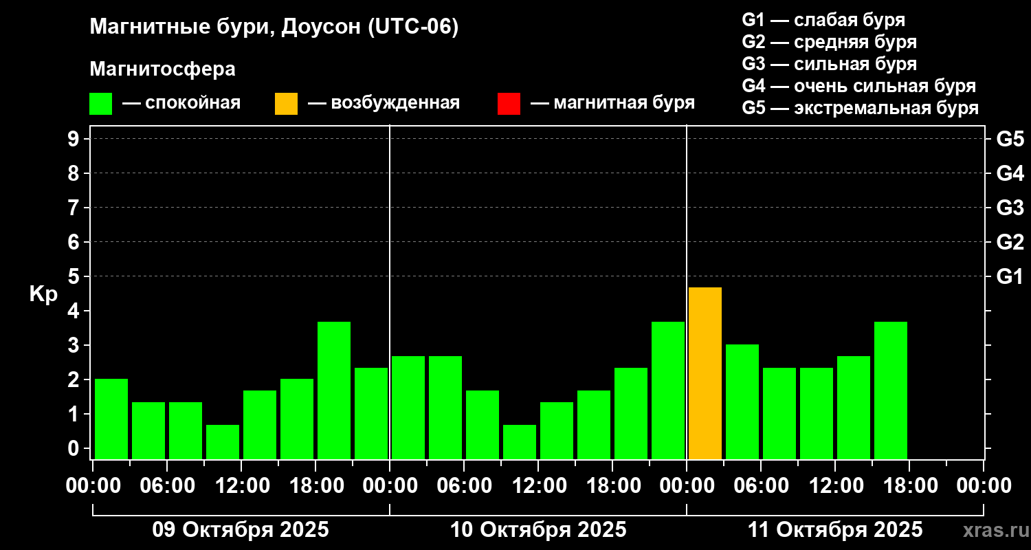 Магнитные бури в Доусоне 11 октября 2025 года