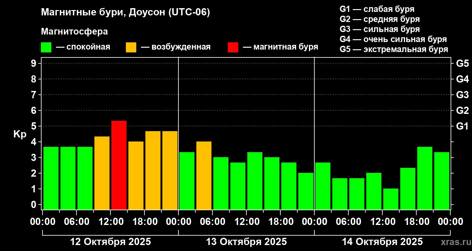 Магнитные бури в Доусоне — 14 октября 2025 года
