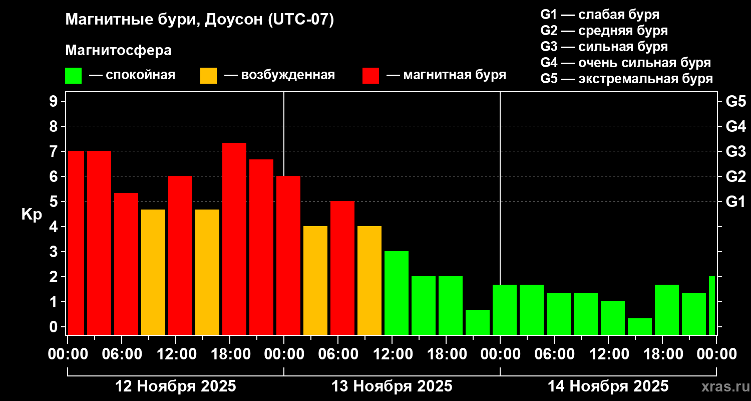 Магнитные бури в Доусоне 14 ноября 2025 года
