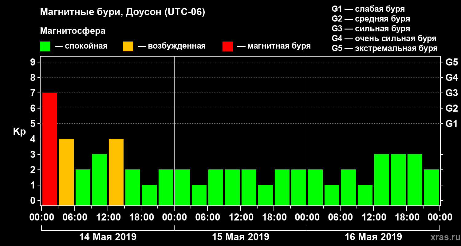 Магнитные бури в Доусоне 16 мая 2019 года