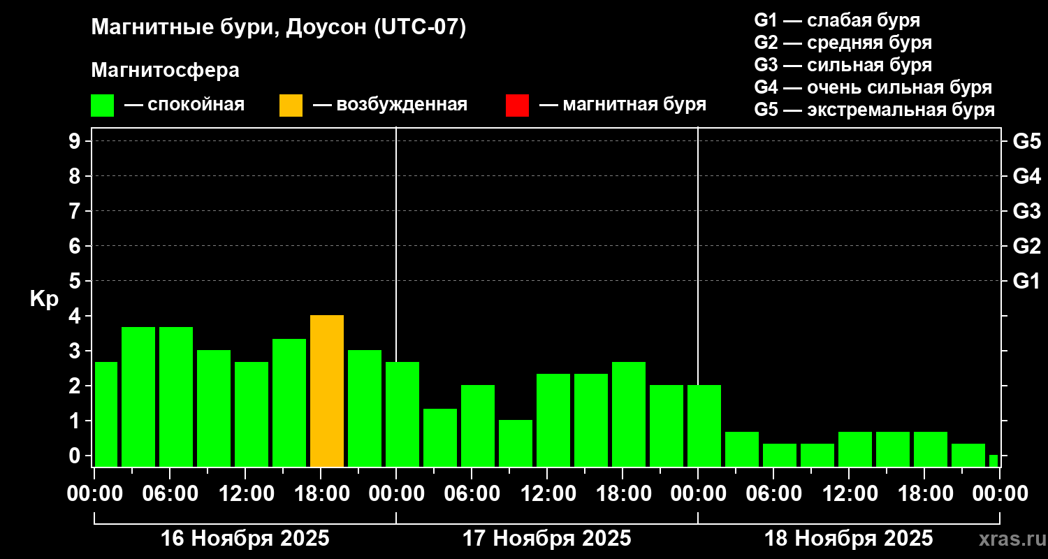 Магнитные бури в Доусоне 18 ноября 2025 года