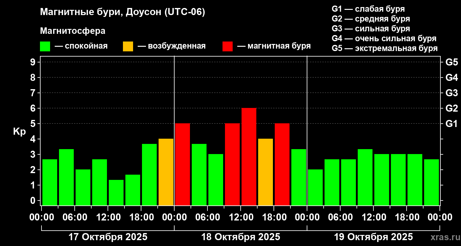 Магнитные бури в Доусоне 19 октября 2025 года