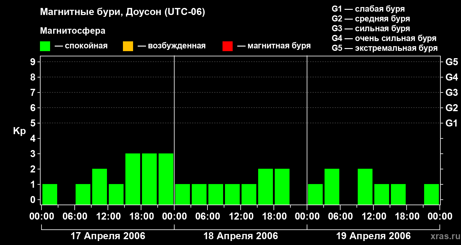 Магнитные бури в Доусоне 19 апреля 2006 года