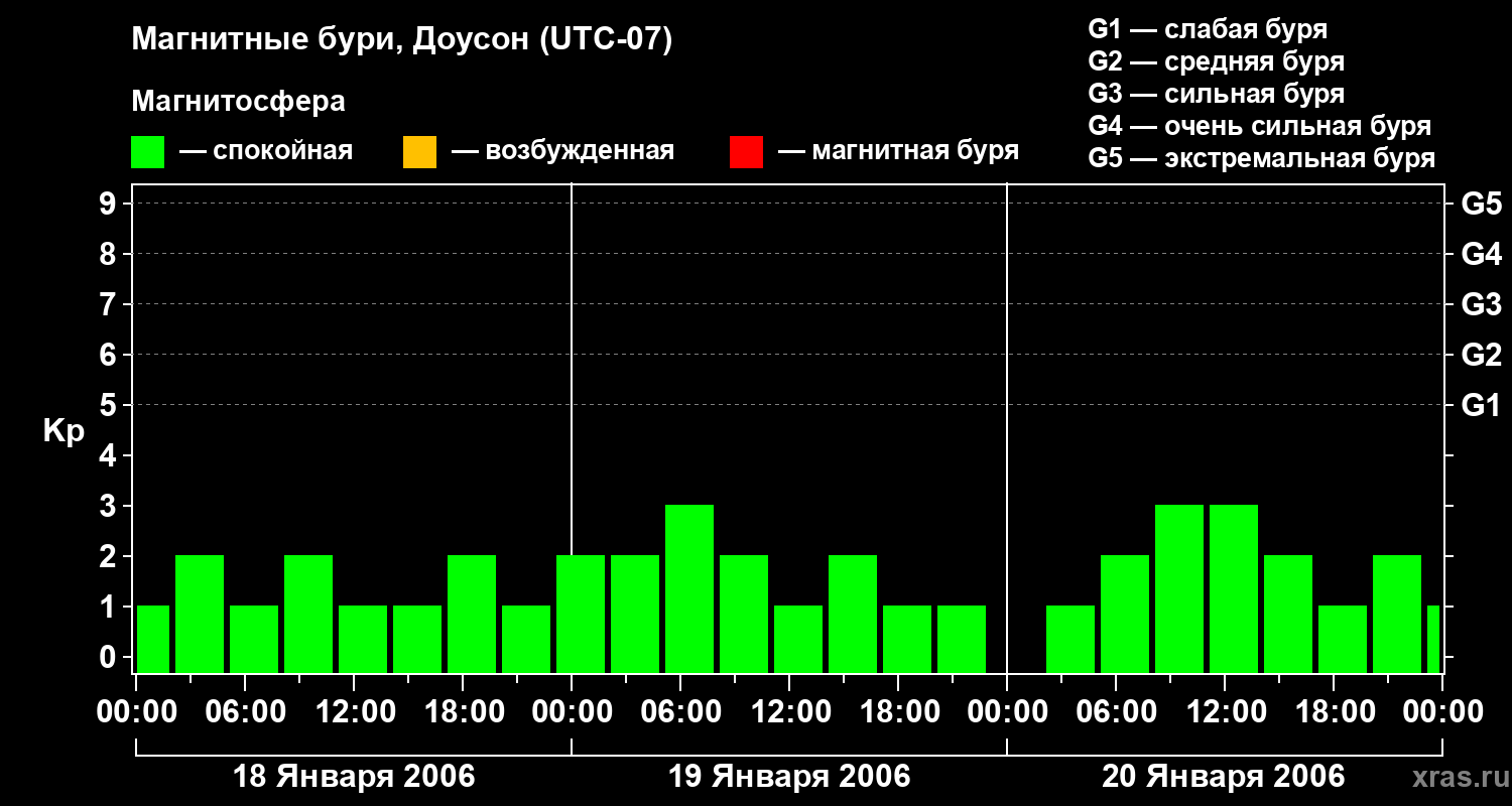 Изменения геомагнитного индекса Kp с 18 по 20 января 2006 года для средних широт