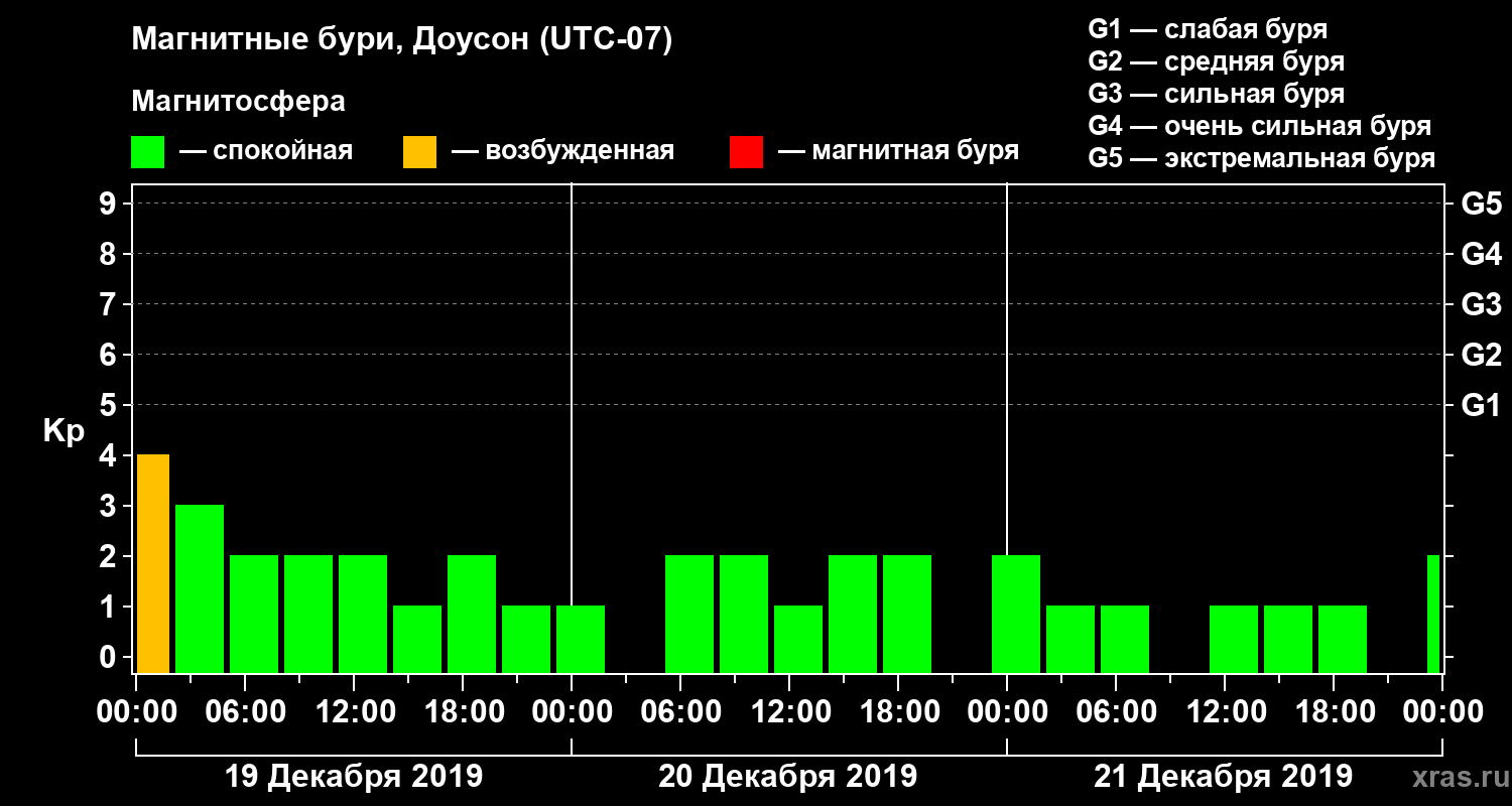 Магнитные бури в Доусоне 21 декабря 2019 года
