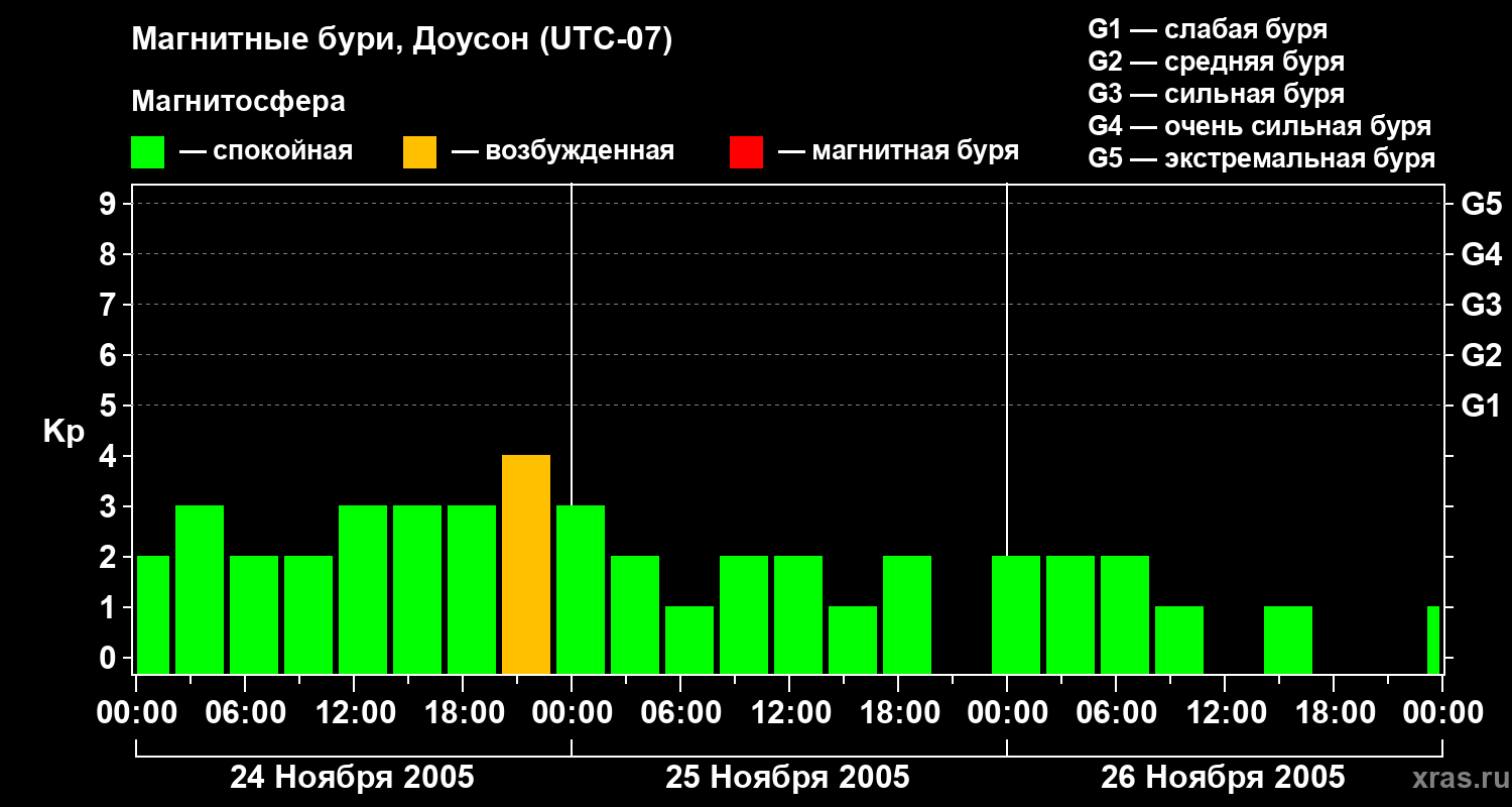 Магнитные бури в Доусоне 26 ноября 2005 года