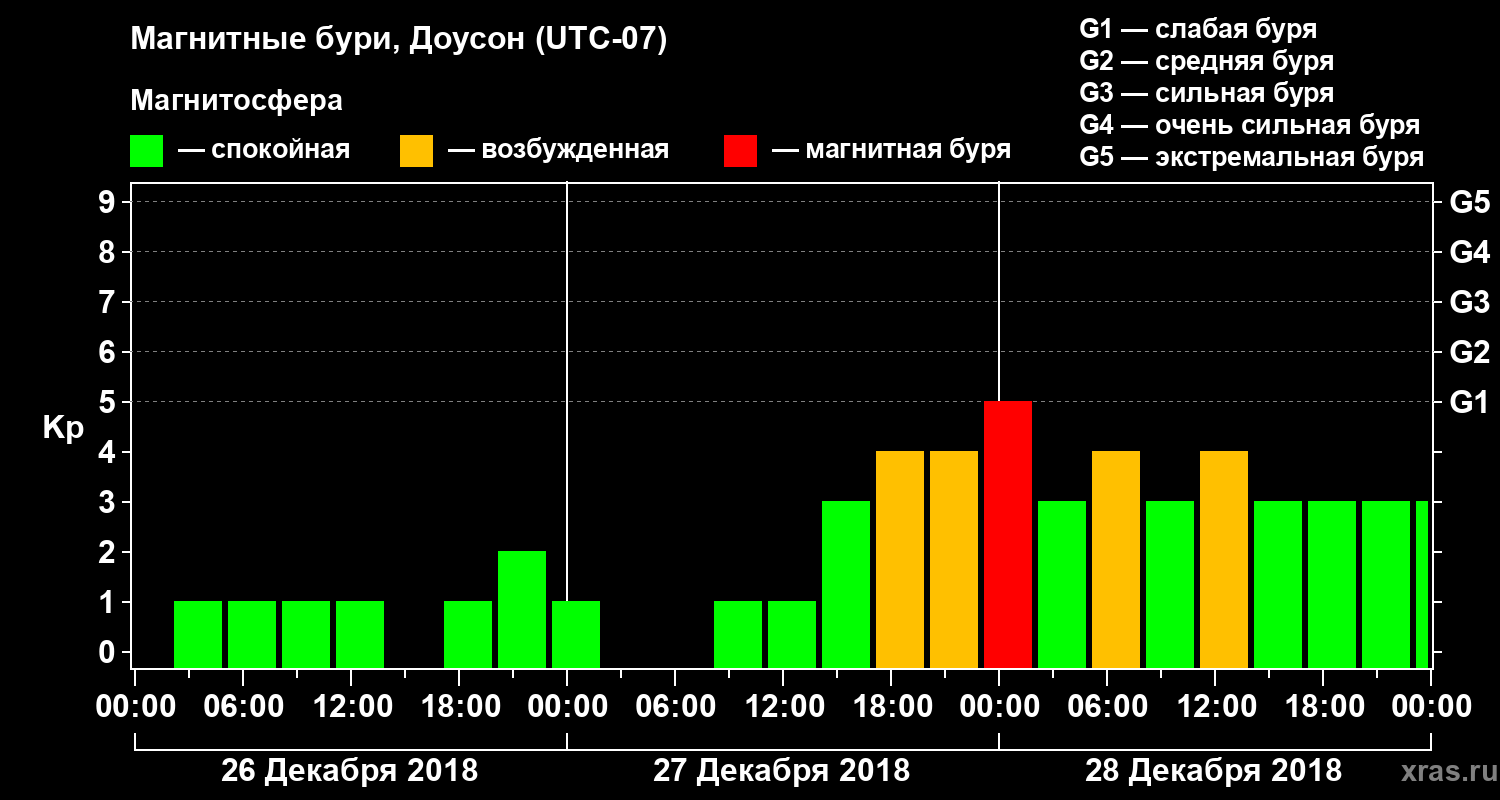 Магнитные бури в Доусоне в декабре 2018 года