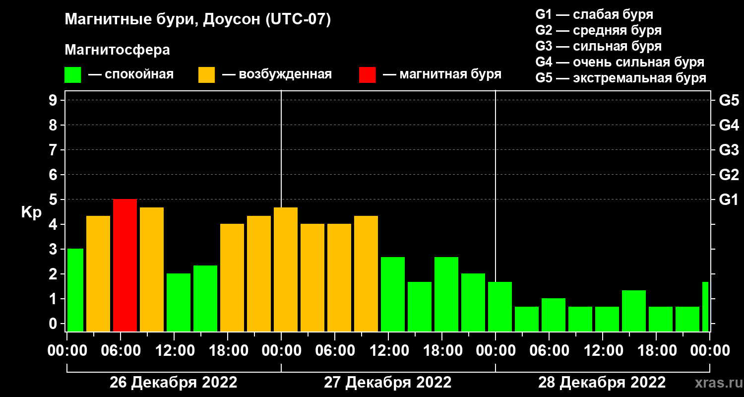 Магнитные бури в Доусоне в декабре 2022 года