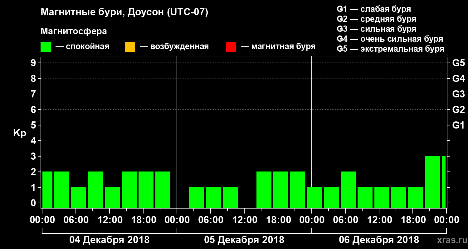 Магнитные бури в Доусоне 6 декабря 2018 года