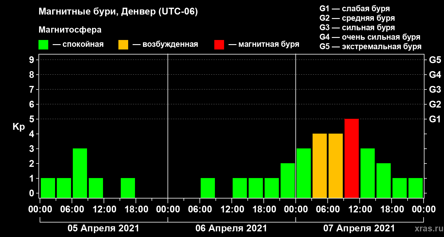 Магнитные бури в Денвере 7 апреля 2021 года