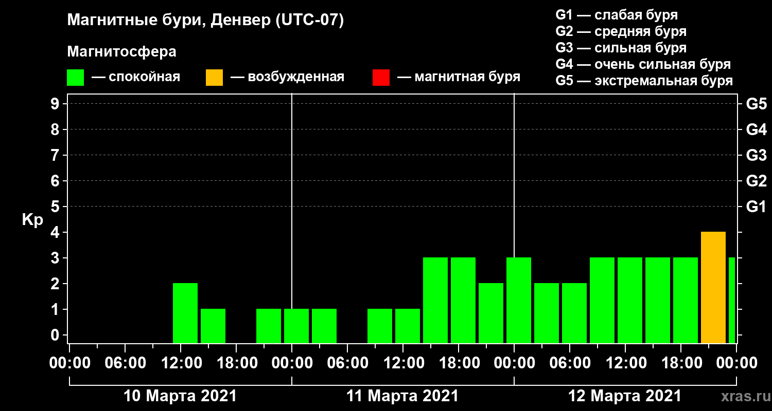 Магнитные бури в Денвере 12 марта 2021 года