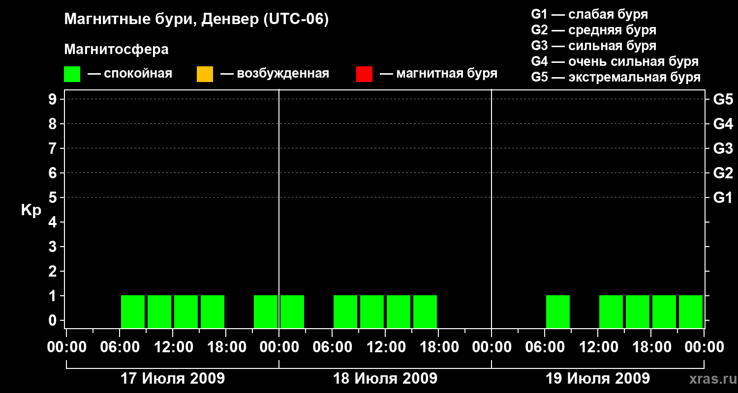 Изменения геомагнитного индекса Kp с 17 по 19 июля 2009 года для средних широт