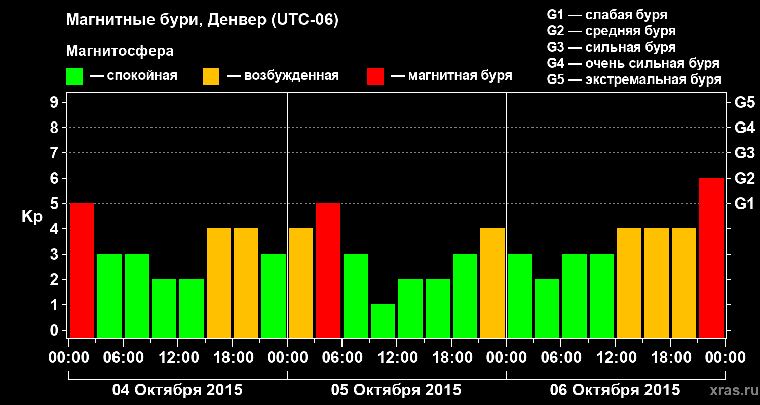 Изменения геомагнитного индекса Kp с 4 по 6 октября 2015 года для средних широт