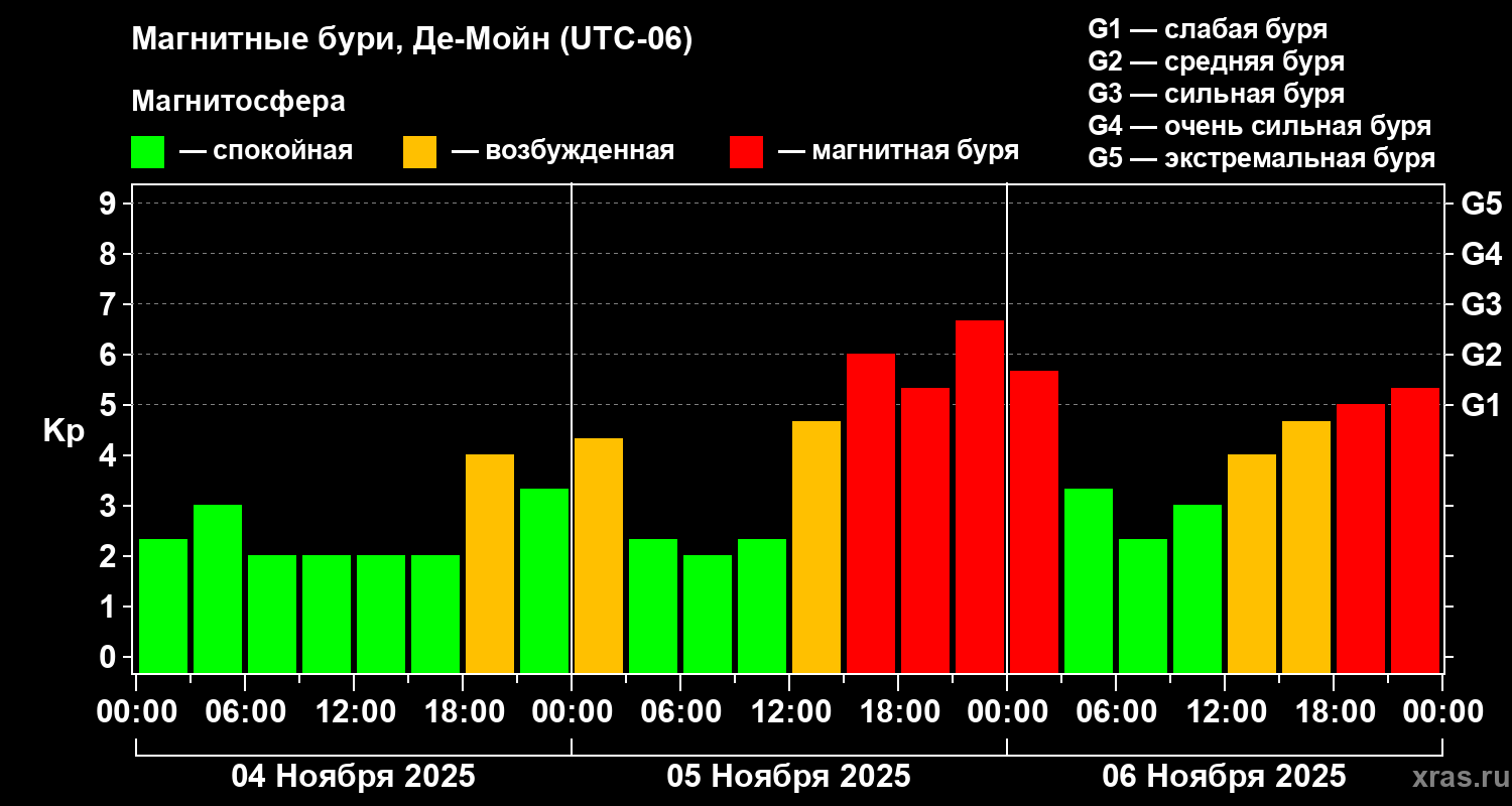 Магнитные бури в Де-Мойне 6 ноября 2025 года