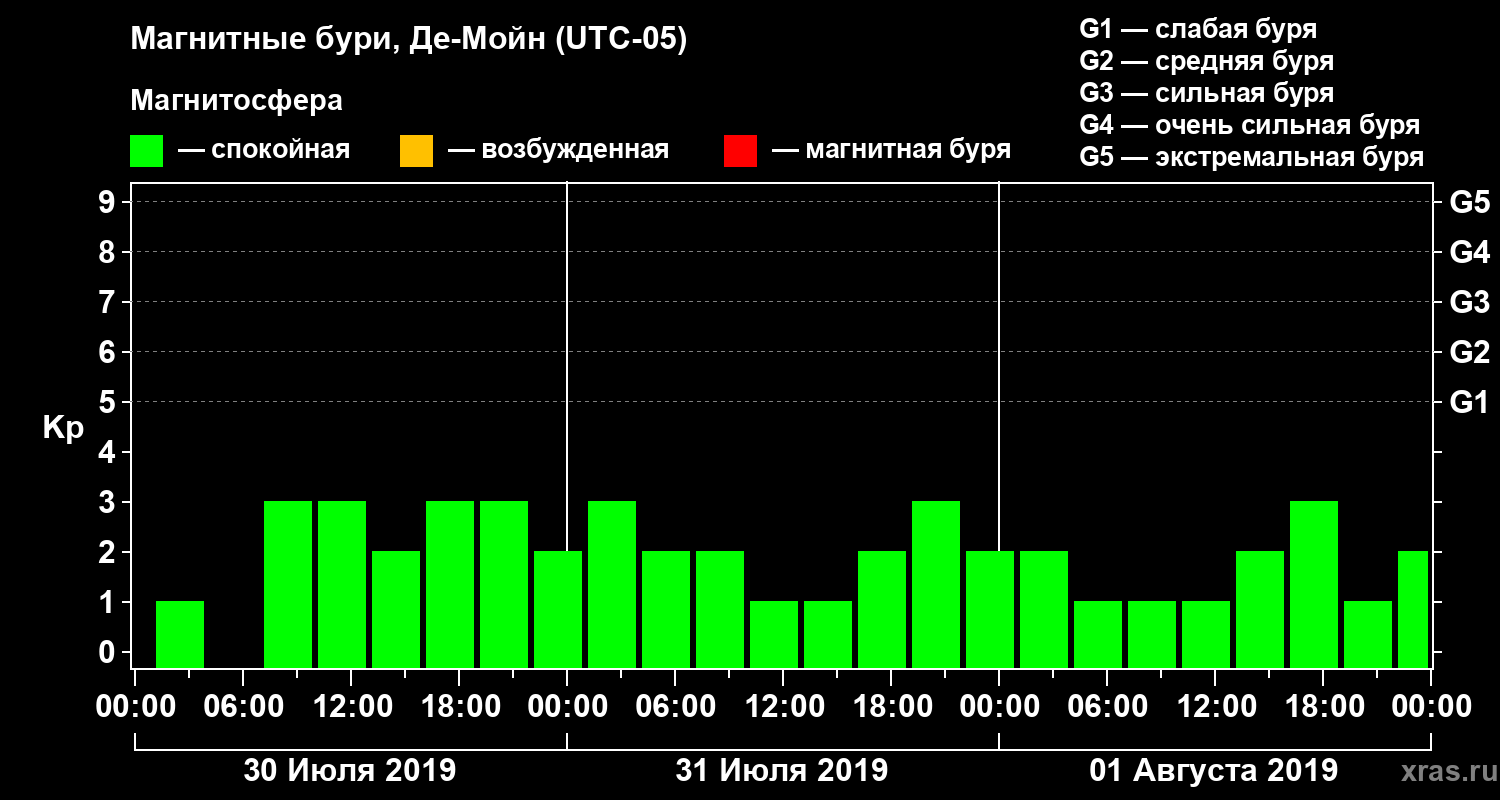 Магнитные бури в Де-Мойне — 1 августа 2019 года