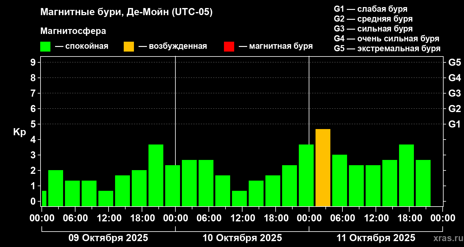 Магнитные бури в Де-Мойне — 11 октября 2025 года