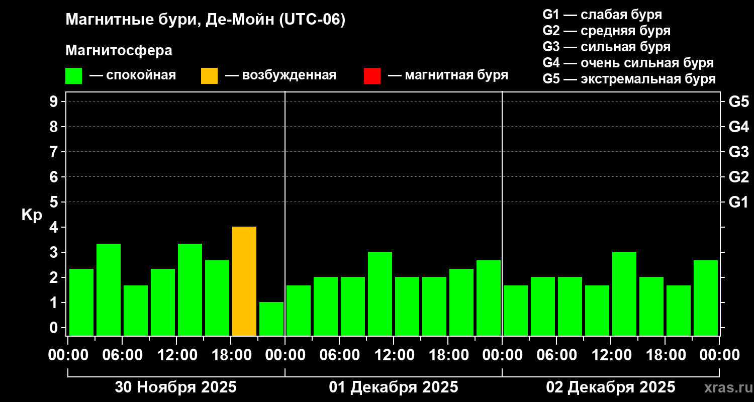 Магнитные бури в Де-Мойне — 2 декабря 2025 года