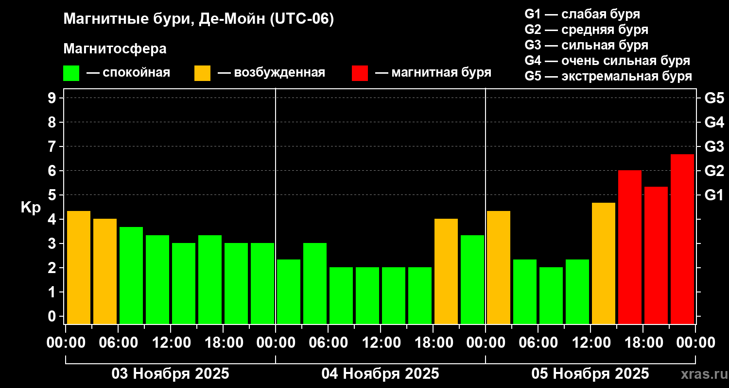 Магнитные бури в Де-Мойне 5 ноября 2025 года