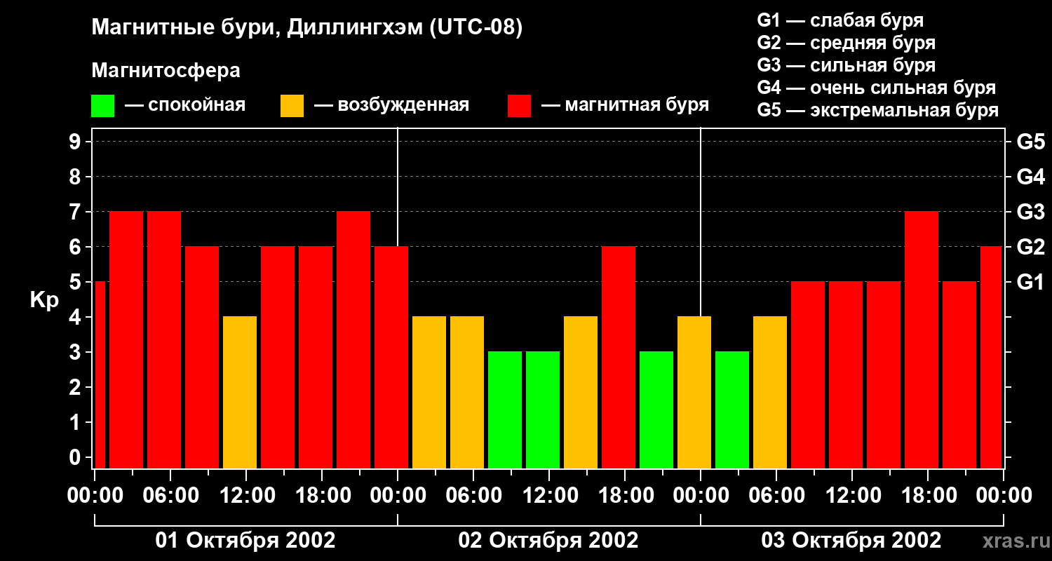 Магнитные бури в Диллингхэме 3 октября 2002 года