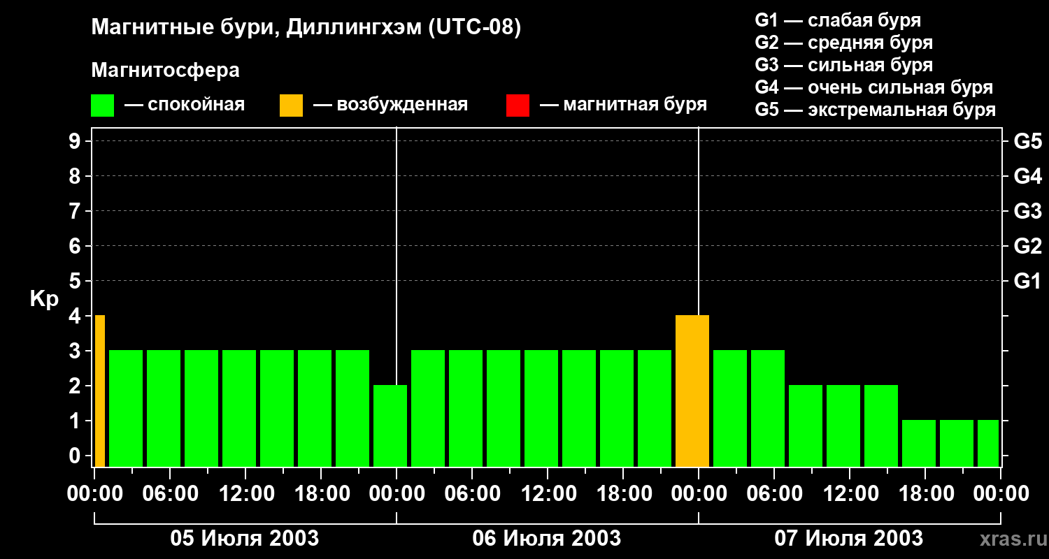 Магнитные бури в Диллингхэме — 7 июля 2003 года