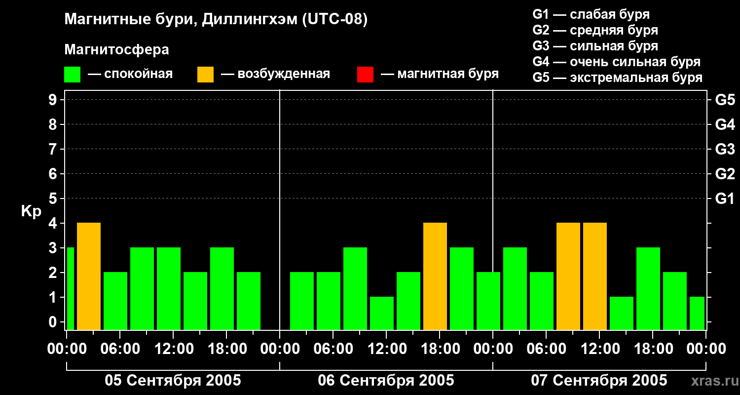 Магнитные бури в Диллингхэме 7 сентября 2005 года