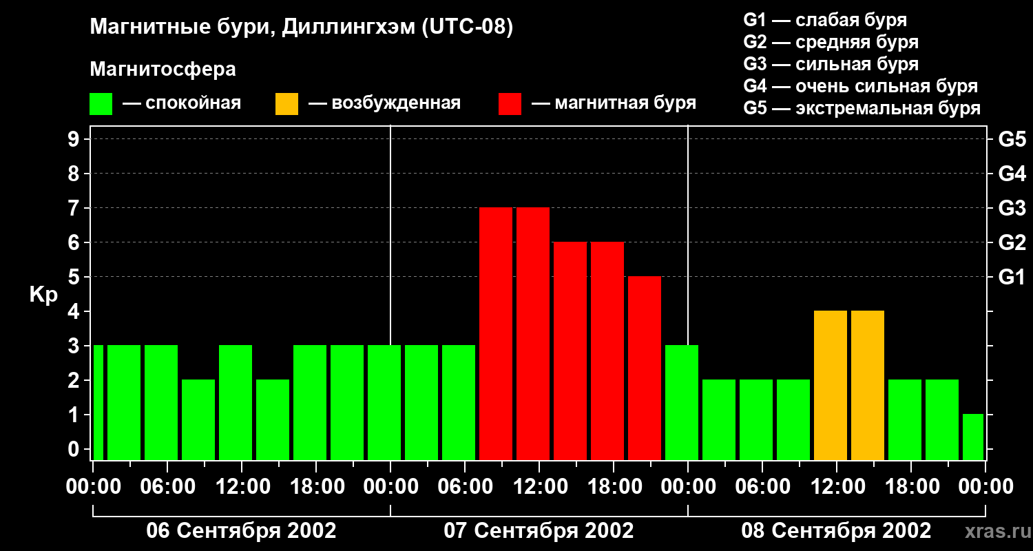 Магнитные бури в Диллингхэме 8 сентября 2002 года