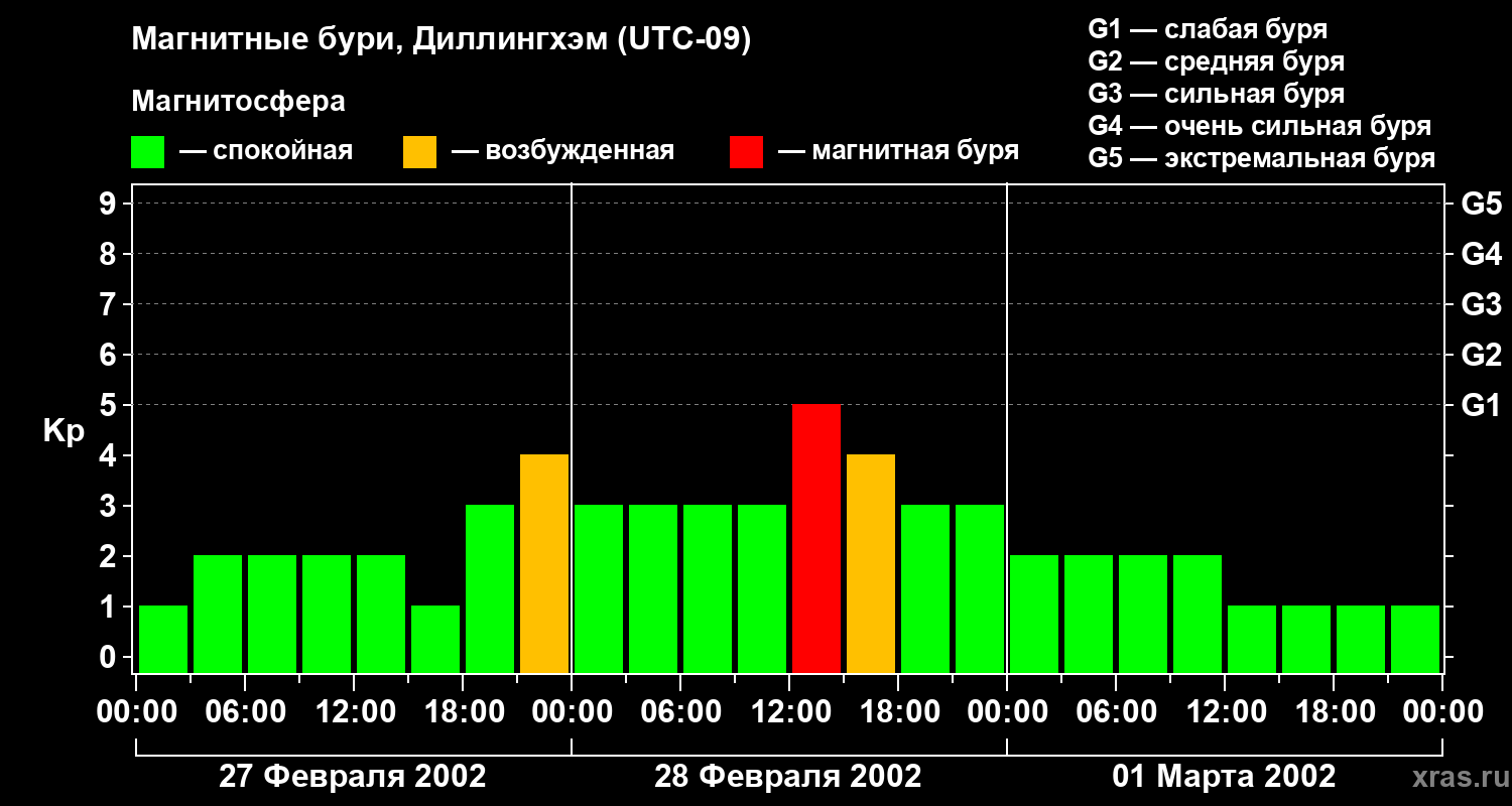 Магнитные бури в Диллингхэме — 1 марта 2002 года