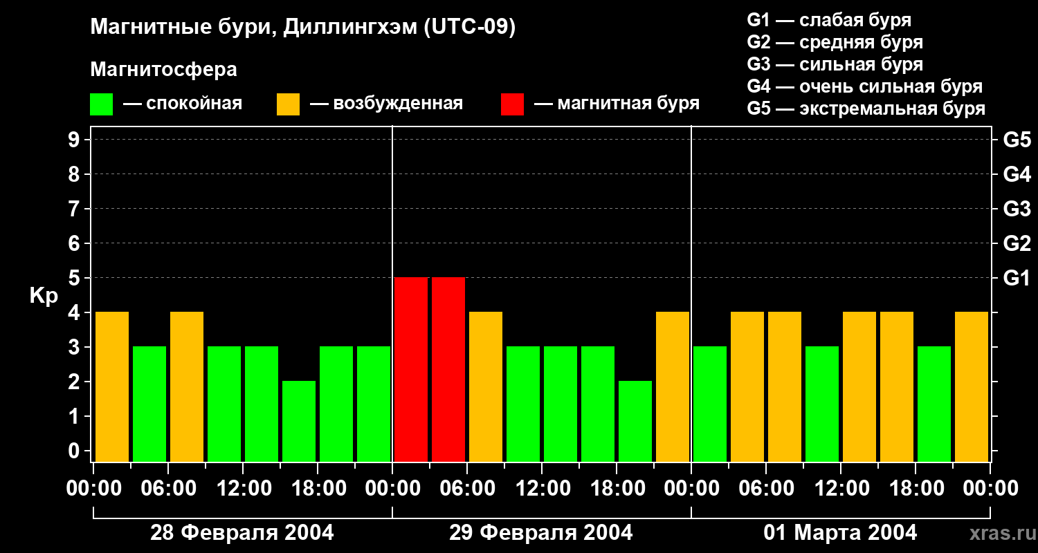 Магнитные бури в Диллингхэме 1 марта 2004 года