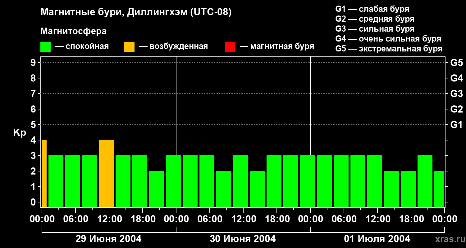 Магнитные бури в Диллингхэме — 1 июля 2004 года